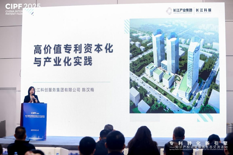 主旨分享環(huán)節(jié),長江科服黨委書記、董事長陳漢梅做了《高價值專利資本化與產(chǎn)業(yè)化實踐》的主旨分享,介紹了湖北長江科創(chuàng)服務集團在專利資本化和產(chǎn)業(yè)化方面的經(jīng)驗。她詳細闡述湖北圍繞建設知識產(chǎn)權(quán)交易樞紐、構(gòu)建全鏈生態(tài)體系的實踐,從完善集聚區(qū)功能、創(chuàng)新資本化服務、聚焦產(chǎn)業(yè)化 “一站式” 服務、深化聯(lián)動機制、培養(yǎng)人才隊伍五方面發(fā)力,推動高價值專利轉(zhuǎn)化。